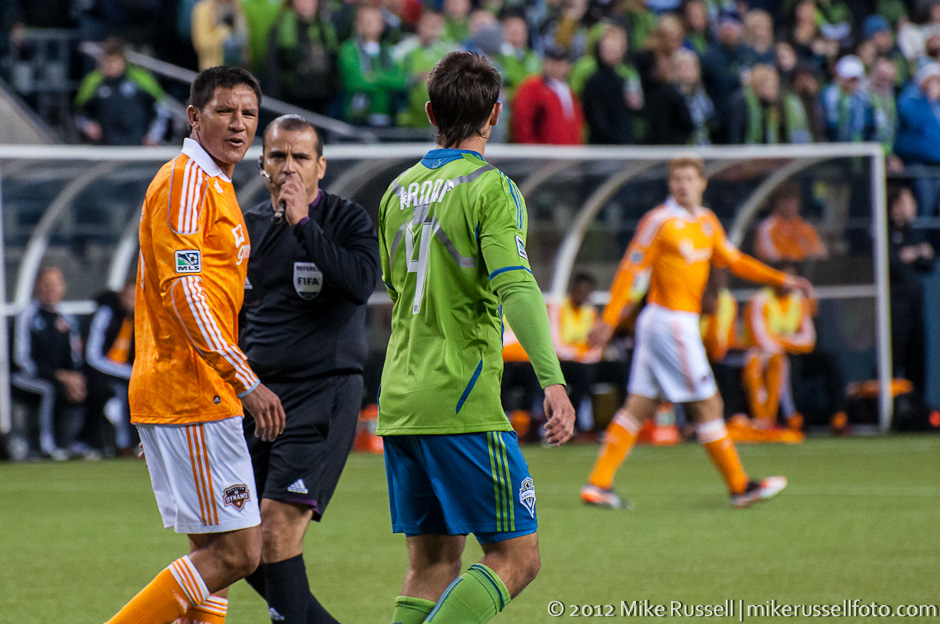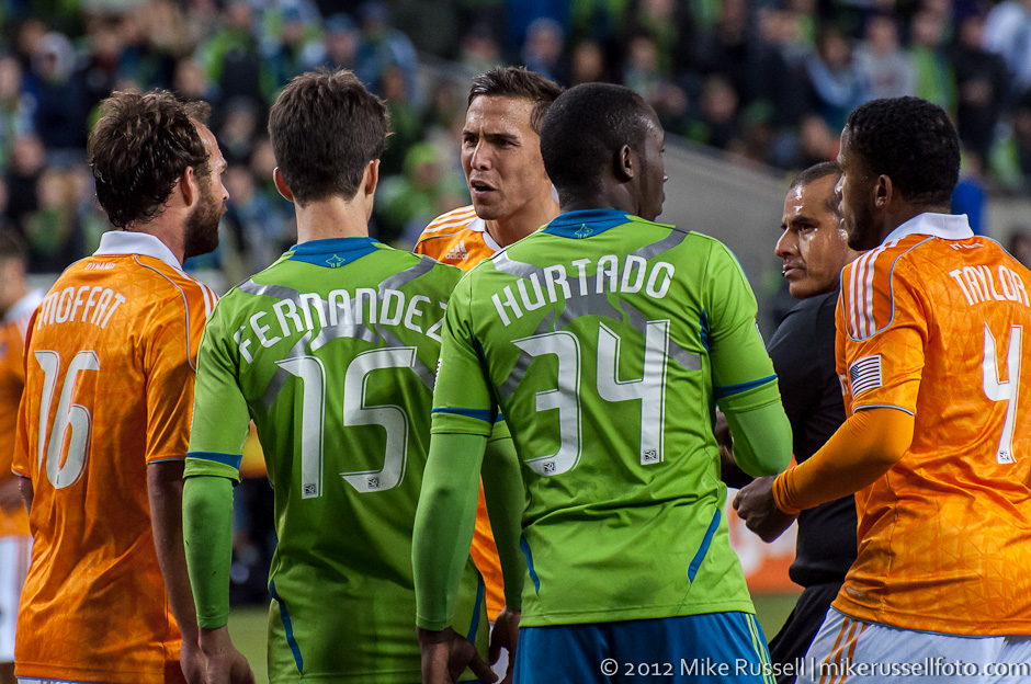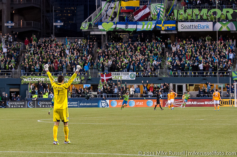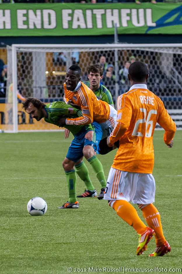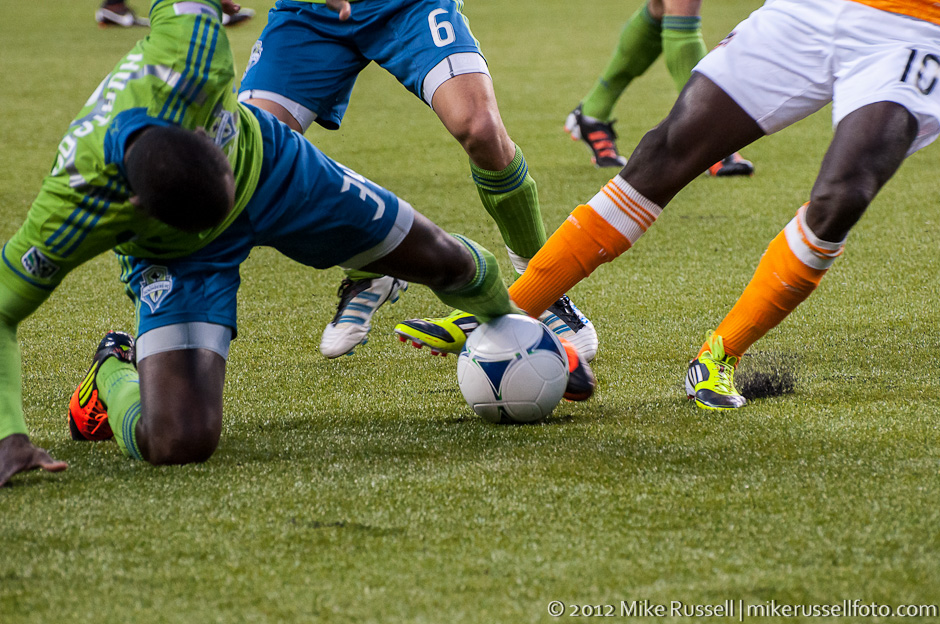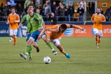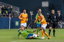 It wasn’t the prettiest of matches — fouls, floppi- I mean “gamesmanship” (from both sides), a deflected goal and an arguably soft penalty call. But Seattle Sounders managed to keep the previously undefeated Houston Dynamo scoreless while scoring 2 goals partway through the first half. The 2-0 win gives the Sounders a 2-0-0 record on the season.