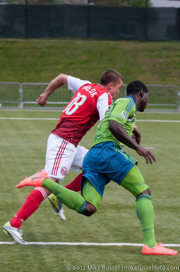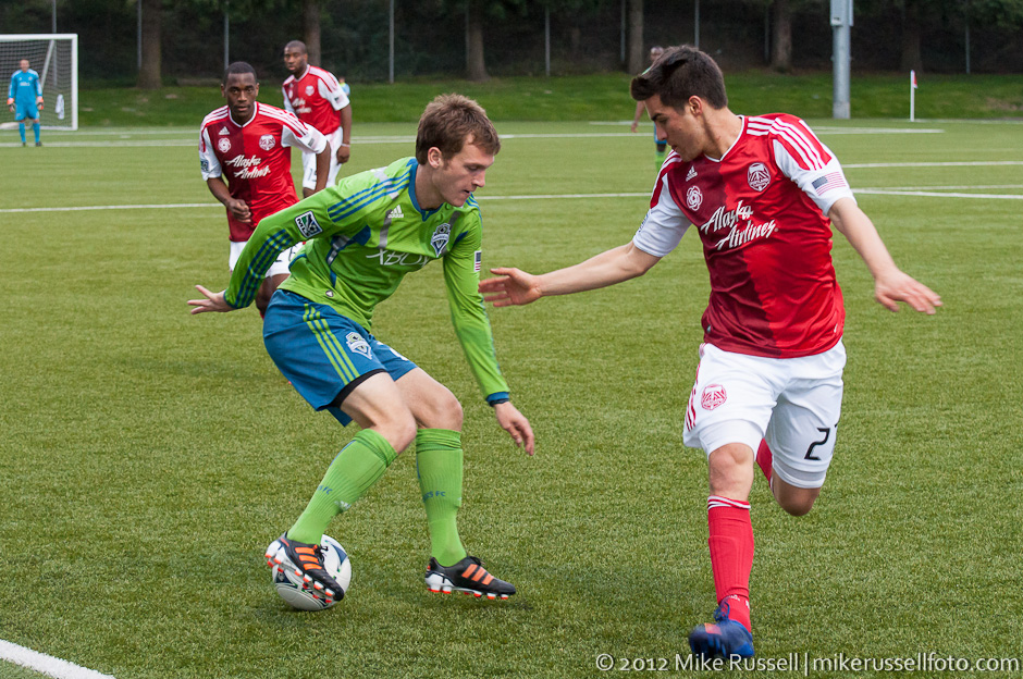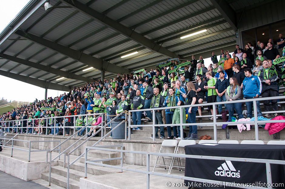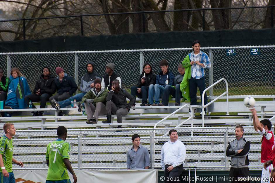 Last night I went to Starfire Sports to shoot some of the reserve league match between Seattle Sounders and Portland Timbers. A good crowd was on hand, but unfortunately there wasn’t a lot to for them to cheer about. The Timbers got an early lead off a Seattle own goal, and they kept the Sounders scoreless to win it 2-0.
