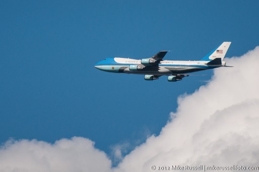 President Obama paid a visit to Seattle on day 177. I was lucky that they had to take off heading north from Boeing Field, so he flew right past my house in West Seattle as he was leaving.