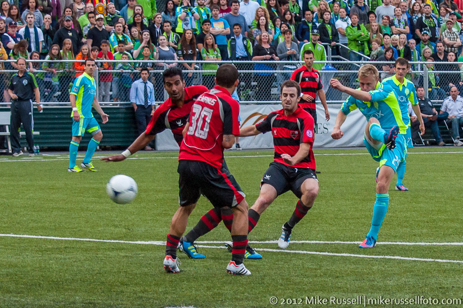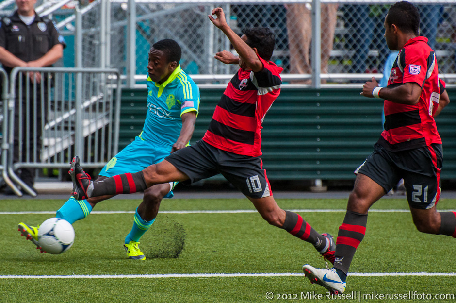 The lower division NASL club put up a good fight against the MLS Sounders for much of the first half. But then the flood gates opened. Seattle put one in just before halftime and came out firing on all cylinders for the start of second half. In a little over 20 minutes, the Sounders knocked in 5 goals and then closed out the match 5-1. The goals came from Andy Rose, Osvaldo Alonso, Alex Caskey, and 2 from Sammy Ochoa.