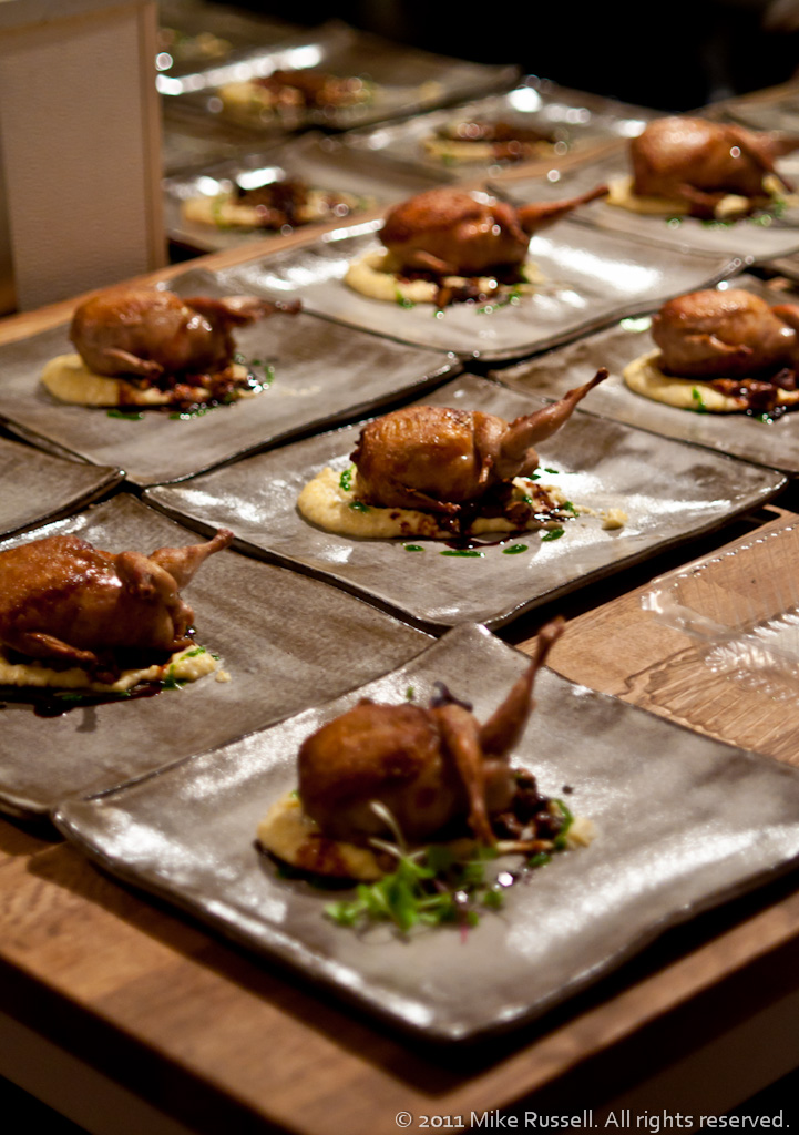 Italian sausage-stuffed quail, creamy polenta, lion’s mane mushrooms. Served with Caparzo Brunello di Montalcino, 2005 from Toscana, IT.
