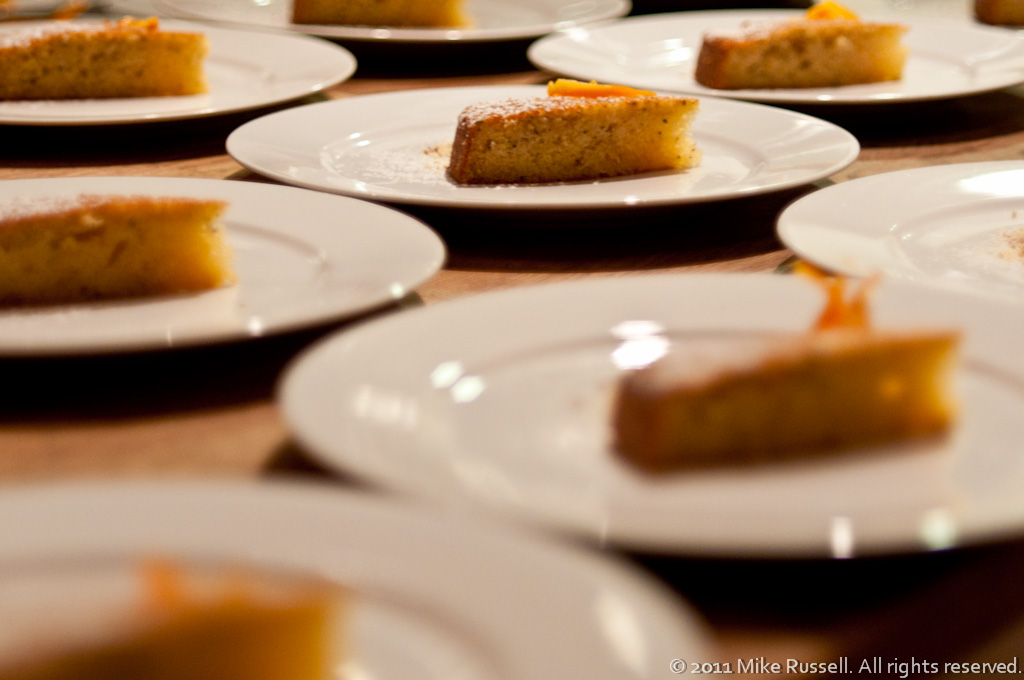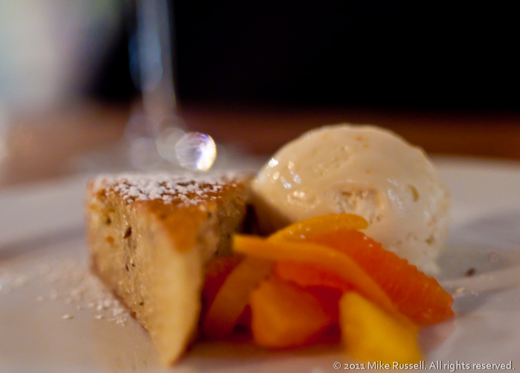 Olive oil cake, honey-orange gelato, citrus. Served with Giribaldi Moscato d’Asti, 2010.