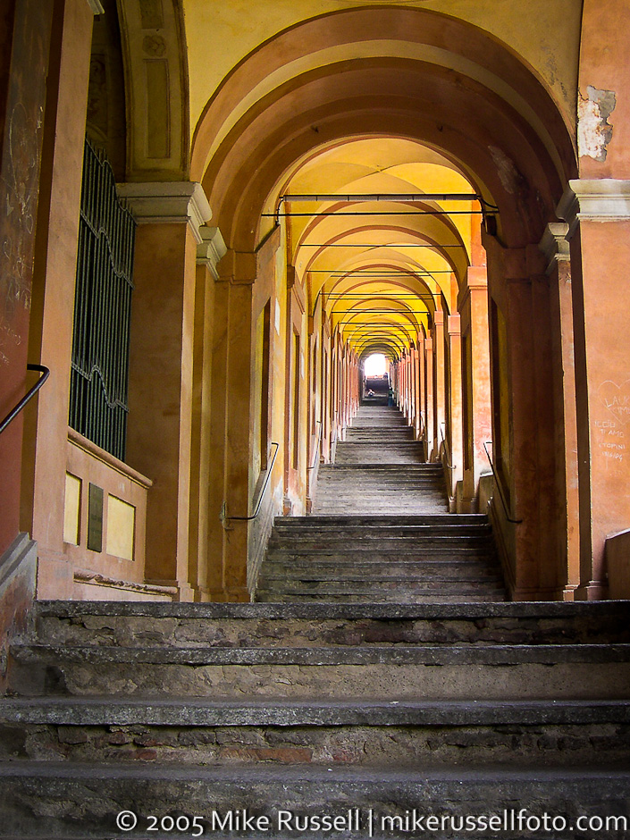 This first entry is from the Portico di San Luca in one of my favorite not-so-touristy towns in Italy – Bologna. This portico starts at the bottom of the Colle della Guardia (Hill of the Guards) and over the course of about 2 miles, climbs around 1000 feet to the top where the Santuario Madonna di San Luca (Sanctuary of Madonna of San Luca) sits.