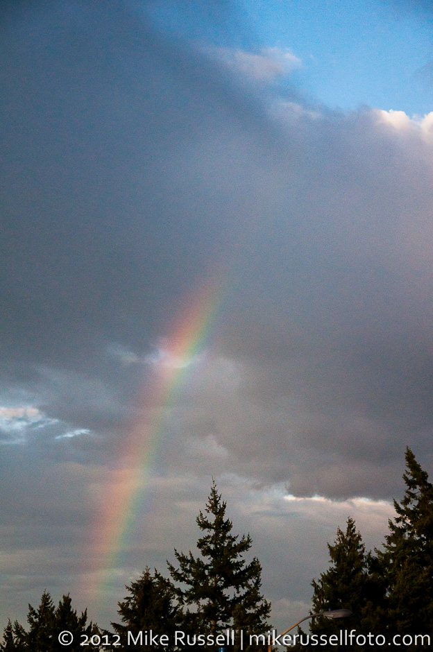 Seattle is currently experiencing its second driest streak ever (6 more days and it will be the driest). I think we’re up to 46 days without measurable rain. But on August 28, a “trace” amount of rainfall created this nice (albeit short-lived) rainbow here in West Seattle.