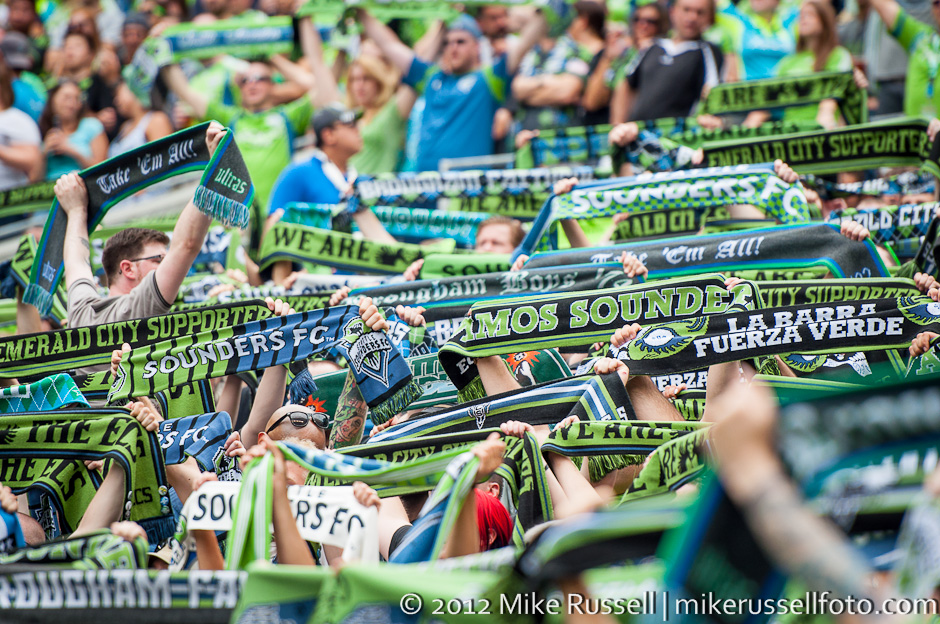 Sounders fans showing their support during the Vancouver Whitecaps match.