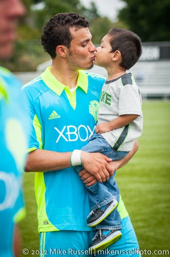 I’ve shot thousands of photos of Sounders players in action this year – crunching tackles, bloody faces, jubilant celebrations, but this may just be my favorite photo of them all. Sammy Ochoa with his son after a Reserve League match.