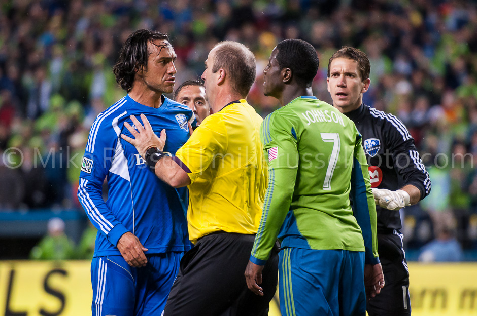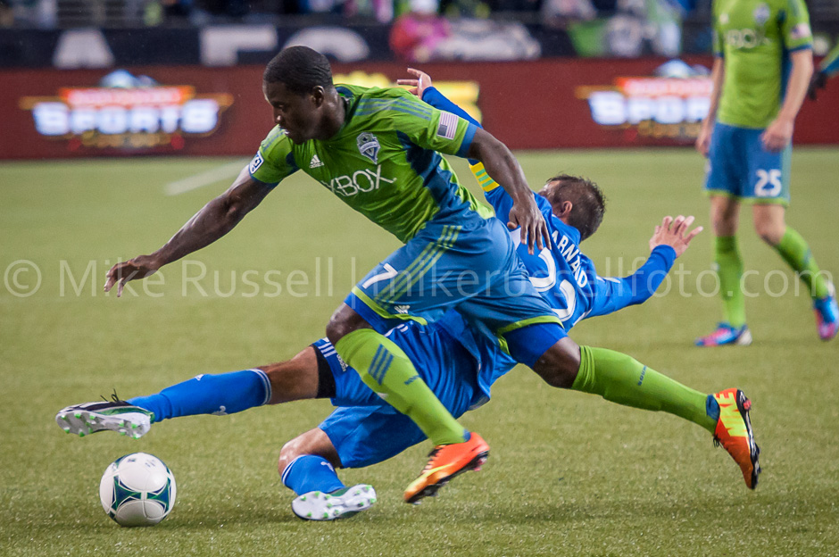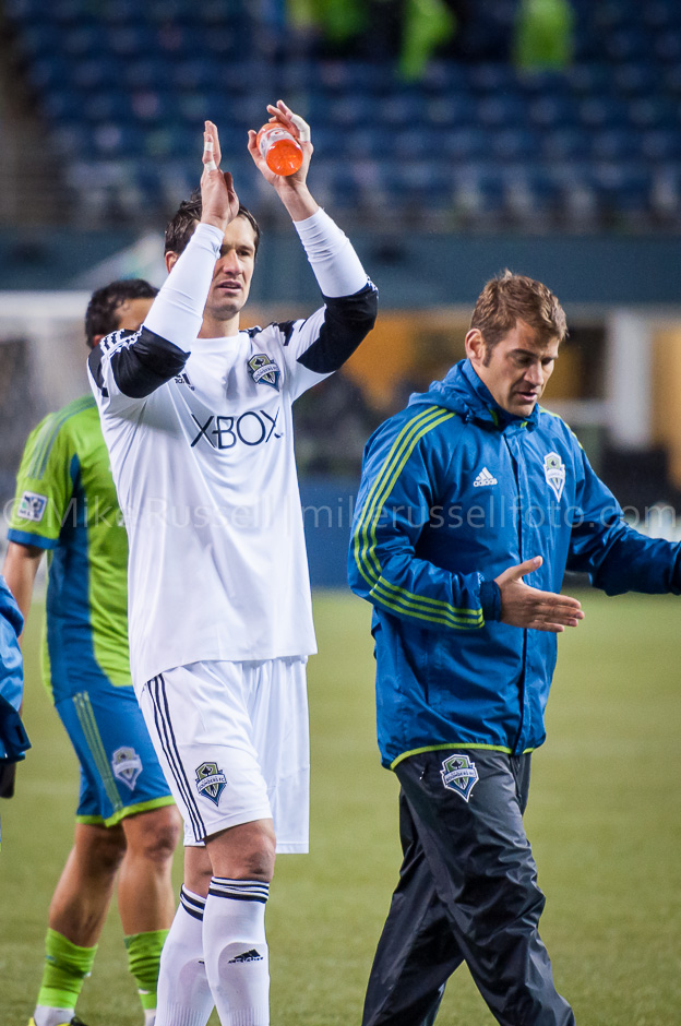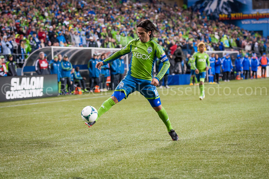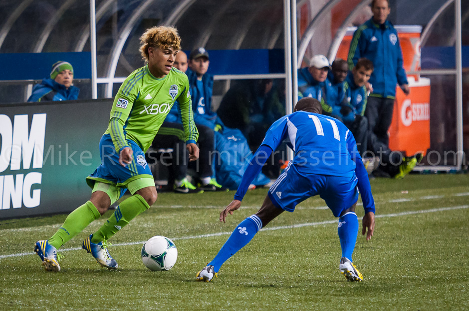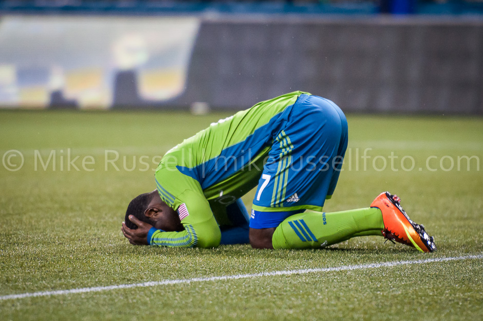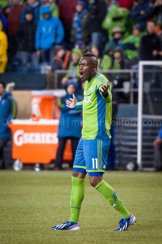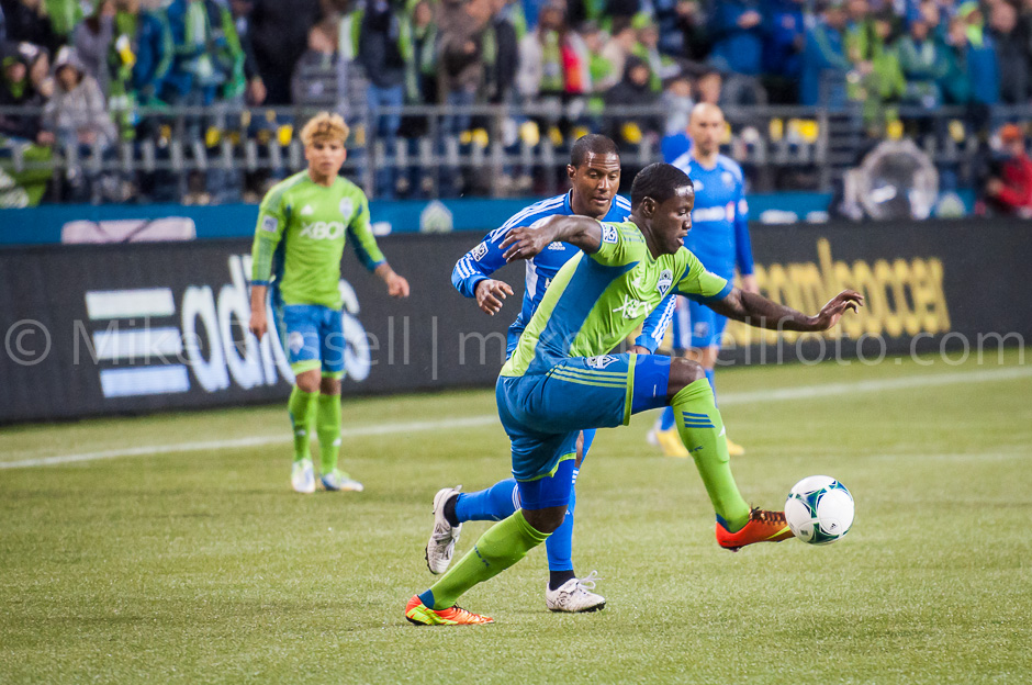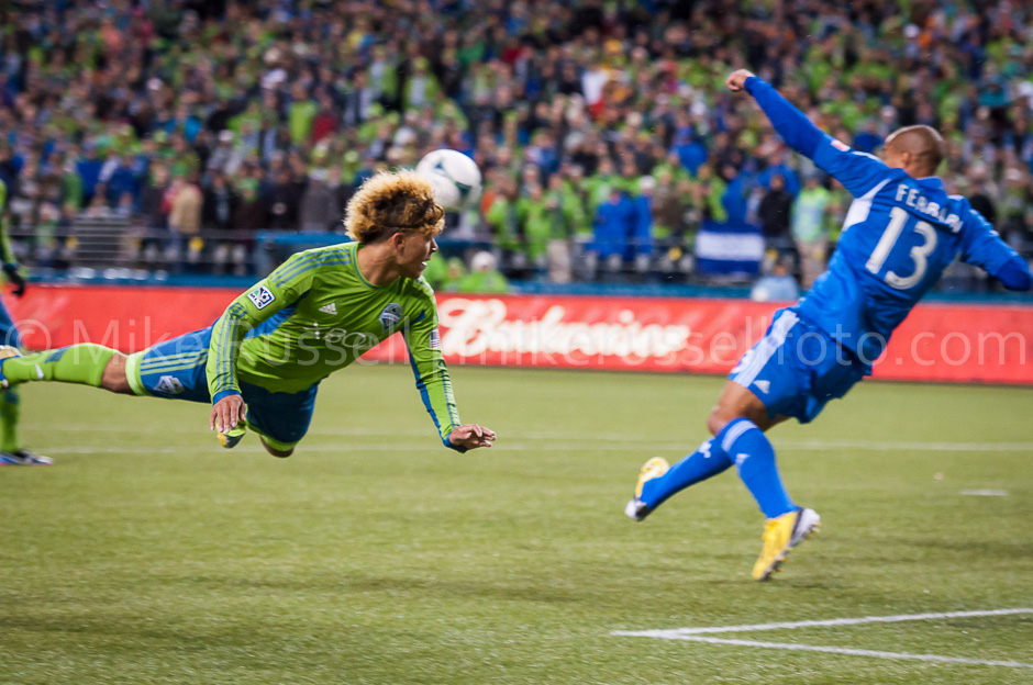 The brightest spot of the night was the debut performance of Seattle’s 19 year old “homegrown” player, DeAndre Yedlin. He seemed to be a bit nervous the first few minutes, but it wasn’t long before he settled in and was getting forward into the attack from his right-back position. But what was really impressive was how he still managed to track back and perform well in defense, too. If he can keep this up, I think he just might win the regular starting spot from Adam Johansson (who was out with a slight injury).