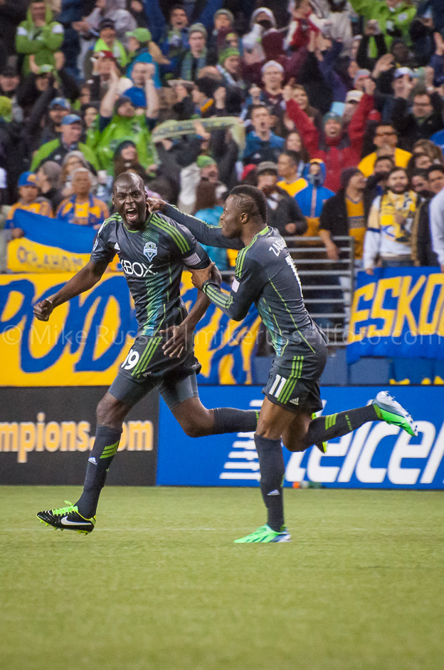 I’m not sure what Sigi Schmid told the team during halftime, but they came out attacking. In the 53rd minute, the 19 year old homegrown player, DeAndre Yedlin belted in a volley to get the Sounders on the scoreboard. Seven minutes later, newly signed Djimi Traore – Liverpool veteran and squad member of possibly the biggest comeback in all of soccer history, the 2005 UEFA Champions League Final – blasted in another shot from distance to bring the home team to within one.