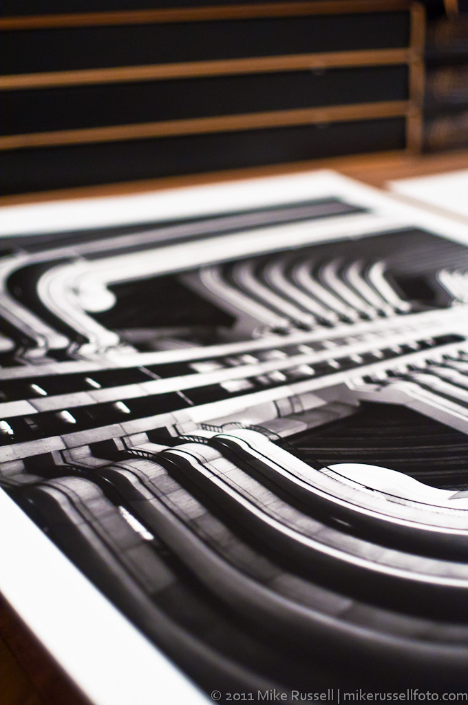 Today I picked up more matboard for the larger prints. Tomorrow I’m going to spend some time cutting the new mats. Currently, the new prints are laying out in my makeshift studio/second bedroom. Here’s one of them…