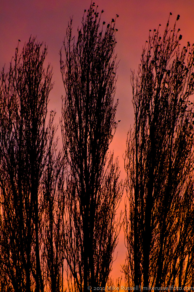 But on evenings (or afternoons, in this case) like this one, I just can’t resist. So, I try to frame something in the foreground to make it somewhat distinguishable from all the other sunsets that I’ve seen. These are some, I believe, poplar trees near my house.