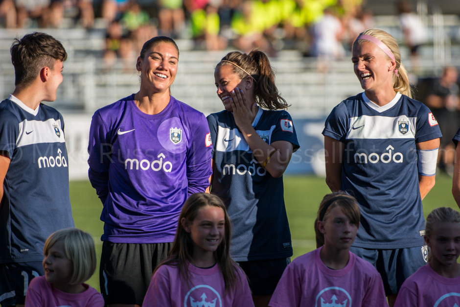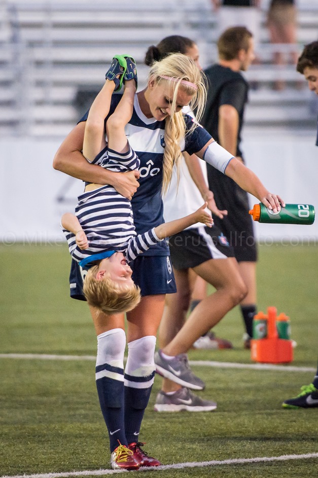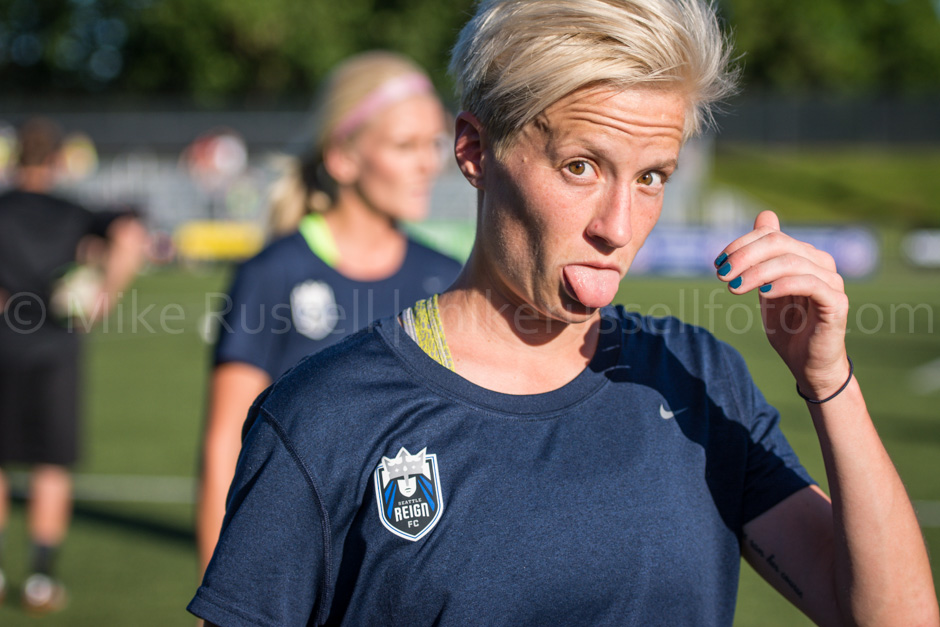 Usually everyone has their game face on and look very serious. But last night, Megan Rapinoe did what most players seem to actively avoid – she looked straight into my lens. And not just that, but she also pulled an awesome goofy face. Thanks Pinoe! I love that photo!