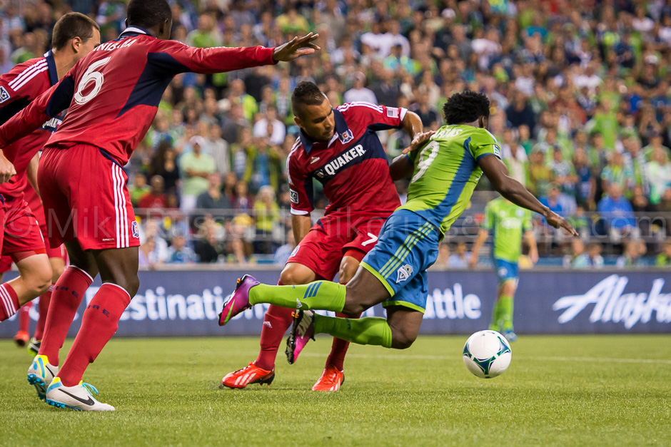 The Seattle Sounders went down a goal to Chicago Fire midway through the first half, but Lamar Neagle evened it up before halftime. It remained tied until shortly after Zach Scott subbed on. In the 89th minute, he sent a low driven cross into the box which Gonzalo Segares knocked into his own goal.
