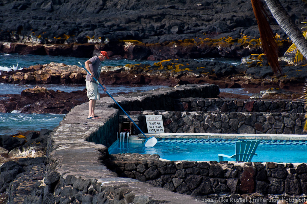 The house is situated on one side of a small cove. On the other side is a little hotel with this pool. Guess he’s not too worried by that sign.