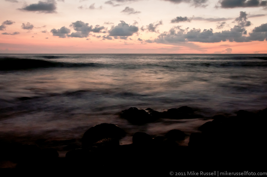 And, as warned, here are a couple more slow shutter photos of waves after sunset. I’m not sure how I feel about the color one. I did more post production on it than I usually do, which gave it a graininess that’s not so natural. Though I’m not sure that’s as obvious in the online version. But hey, that’s partly why I’m doing this project 365, to try out new things and see what I like.
